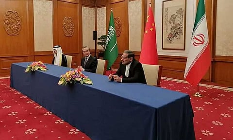 كانت العلاقات الدبلوماسية بين السعودية وإيران، عادت اليوم، حيث جاءت بوساطة صينية، ورغبة منهما في حل الخلافات بينهما من خلال الحوار والدبلوماسية، وذلك في إطار الروابط الأخوية التي تجمع بينهما، والتزاماً منهما بمبادئ ومقاصد ميثاقي الأمم المتحدة ومنظمة التعاون الإسلامي، والمواثيق والأعراف الدولية.