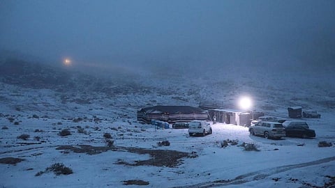 أجواء باردة وصقيع تشهده معظم مناطق المملكة بسبب الأمطار وانخفاض درجات الحرارة والضباب.
