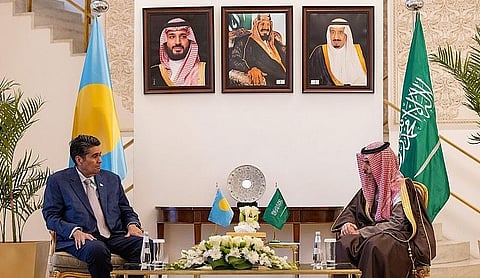 استقبل الأمير فيصل بن فرحان بن عبدالله وزير الخارجية، في مقر الوزارة بالرياض، اليوم، الرئيس سورانجل ويبس جونيور رئيس جمهورية بالاو، وذلك على هامش زيارته الرسمية إلى المملكة.