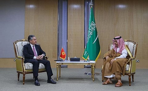 كما التقى الأمير فيصل بن فرحان وزير خارجية قرغيزستان روسالان كازاكباييف، وجرى خلال اللقاء استعراض العلاقات الثنائية، وسبل تعزيزها وتطويرها في مختلف مجالات التعاون والتنسيق المشترك، بالإضافة إلى مناقشة أوجه تعزيز العمل المشترك تجاه مختلف القضايا على الساحتين الإقليمية والدولية، ومناقشة الموضوعات المطروحة في الاجتماع الوزاري بين دول الخليج ودول آسيا الوسطى.