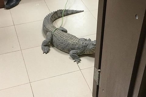 وعلَى الفور أبلغوا الدوريات الأمنية التي حضرت إلى مكان، وتمكن رجال الأمن من الإمساك بالتمساح وتسليمه لصاحبه في المهرجان.