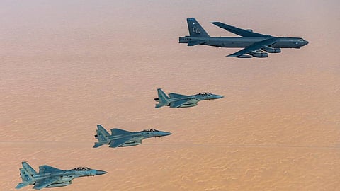 انطلقت، أمس الأربعاء، مناورات التمرين المشترك الثالث بين القوات الجوية الملكية السعودية والقوات الجوية الأمريكية؛ حيث شاركت القوات الجوية الملكية السعودية بمقاتلاتها (إف-15 إس آي)، فيما شاركت القوات الأمريكية بالقاذفة الاستراتيجية (بي 52، ومقاتلات إف 16).