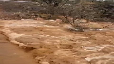 ورصد الباحث في الطقس والمناخ، عبدالعزيز الحصيني، عبر تويتر، مقطع فيديو يوثق تدفق مياه السيول بالقرية وتجمعها في المواقع المنخفضة.