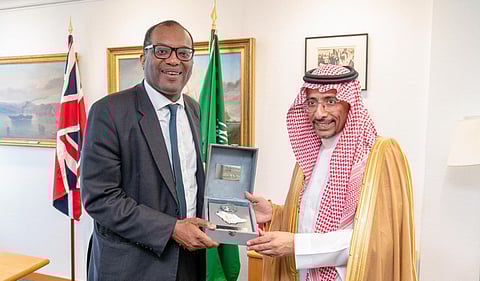 التقى وزير الصناعة والثروة المعدنية بندر بن إبراهيم الخريف بحضور عدد من رؤساء قطاعات منظومة الصناعة والتعدين في لندن وزير الدولة البريطاني لشؤون الأعمال والطاقة والاستراتيجية الصناعية كواسي كوارتنج، وذلك خلال زيارته للمملكة المتحدة، التي تهدف لزيادة التعاون في العلاقات الثنائية بين المملكة العربية السعودية والمملكة المتحدة في قطاعي الصناعة والتعدين.