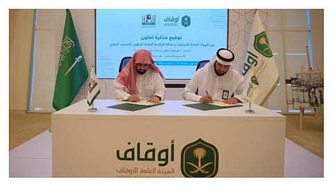 ووقع الاتفاقية وكيل الرئيس العام للحوكمة والشؤون القانونية والتطويرية بوكالة المسجد النبوي الدكتور نبيل بن محمد اللحيدان، ومن جانب الهيئة العامة للأوقاف نائب المحافظ لقطاع المصارف والبرامج التنموية عبد الرحمن بن محمد العقيل.