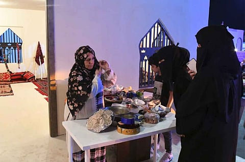 وحرص الزوار على ركن المأكولات الشعبية داخل الجناح العراقي، لاسيما الأكلة الشعبية المعروفة باسم «الدولمة»، ومثلها نال صانعو خواتم الفضة الاهتمام ذاته من الزوار، إذ استمعوا -خلال جولتهم في الجناح- لقصة صناعتها وطريقة تطعيمها بالأحجار الكريمة، وكيفية صناعة بُرادة الحديد في البودق، وكيف يخلط الدبس بالرمل ليصب فيه القوالب، لتأخذ أشكال المحابس والخاتم، ومن ثم لصق العقيق والفصوص الملونة بها، وعرض للوحات الفنية التي تنتشر في أرجاء الجناح وتميزها بانتمائها الأصيل إلى الفن العراقي على الرغم من اختلاف ألوانها وأحجامها وما تحمله من تراث وعادات بلاد الرافدين.
