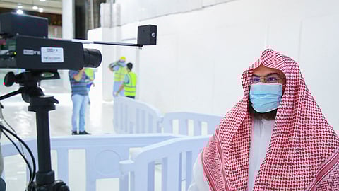 دشن الرئيس العام لشؤون المسجد الحرام والمسجد النبوي الشيخ الدكتور عبدالرحمن بن عبدالعزيز السديس اليوم الكاميرات الحرارية المطورة في المسجد الحرام .