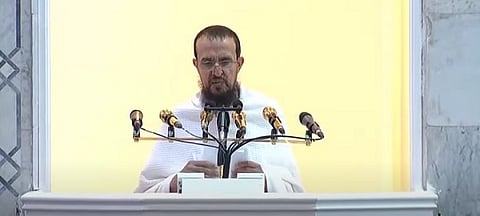 اعتلى منذ قليل، الشيخ يوسف بن محمد بن سعيد، منبر مسجد نمرة لإلقاء خطبة عرفة، ليكون الخطيب الـ 14 الذي يعتلي هذا المنبر على مدار نحو قرن.