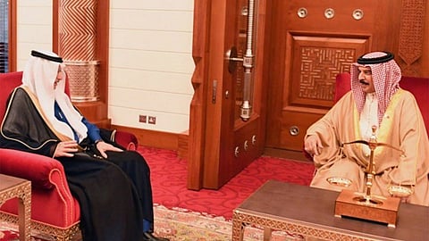 استقبل الملك حمد بن عيسى آل خليفة ملك مملكة البحرين، اليوم، في قصر الصافرية، الأمين العام لمنظمة التعاون الإسلامي الدكتور يوسف بن أحمد العثيمين، الذي يزور المنامة حاليًا.