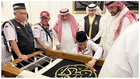واطلع رئيس بعثة الحج الإندونيسية على العرض المرئي بكسوة الكعبة المشرفة، ومراحل صناعتها بالمملكة العربية السعودية ومراحل استبدالها، وقد أشاد بما شاهده من إتقان وجودة في صناعة الكسوة ، وتهيئة كافة المواد الأولية لها، كما تعرف على آلية تطريز القطع المذهبة التي تزين الكسوة والتي تتطلب قدرا كبيرا من الحرفة والتميز والجودة بالعمل اليدوي.