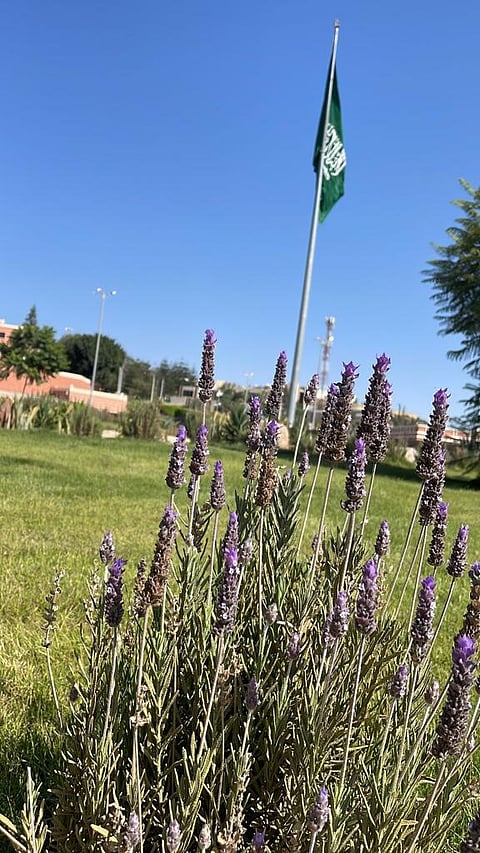 ورسمت المبادرة لوحة جمالية للنبتة العطرية ذات اللون البنفسجي مع العلم السعودي الذي يرفرف عاليًا، احتفاءً بيوم العلم وتجسيدًا للتنمية وجودة الحياة.