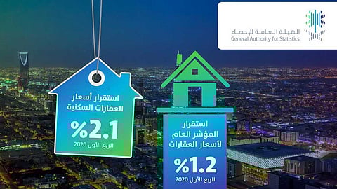 أظهرت نشرة الرقم القياسي لأسعار العقارات في المملكة، خلال الربع الأول من العام الجاري 2020، الصادرة عن الهيئة العامة للإحصاء، استقرار أسعار العقارات نسبيًا؛ محققةً ارتفاعًا طفيفًا بلغ 1.2% على أساس سنوي، فيما سجلت أسعار المساكن زيادة طفيفة بواقع 2.1% على أساس سنوي؛ حيث ارتفعت أسعار الشقق، وانخفضت أسعار الفلل ضمن حركة معتادة لسوق العقارات السكنية تُظهر استقرارًا نسبيًا في السوق بارتفاع أو انخفاض طفيف.