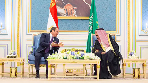 وقد أقام خادم الحرمين الشريفين مأدبة غداء تكريمًا للرئيس المصري.