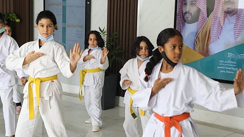 فيما نشرت الحسابات الرسمية لتعليم جازان، لقطات وصور لاستعراض الطالبات لمهاراتهن في الدفاع عن النفس.