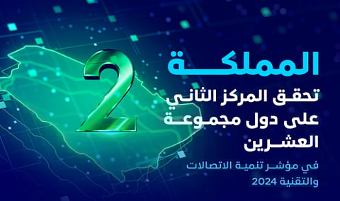 حصدت المملكة المركز الثاني على دول مجموعة العشرين للمرة الثانية على التوالي، في مؤشر تنمية الاتصالات والتقنية 2024 الصادر عن الاتحاد الدولي للاتصالات.