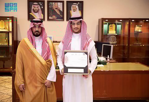 وهنّأ محافظ الخرج الطالب بحصوله على هذه الجائزة، مشيداً بكل من أسهم في الدعم والمساندة لتحقيق هذا الإنجاز، منوّهاً بما توليه القيادة الحكيمة -حفظها الله- من اهتمام ورعاية بأبناء الوطن، وتوفير السبل والبيئة المناسبة لدعم المواهب والمتميزين.