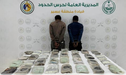 أعلنت الدوريات البرية لحرس الحدود في قطاع ظهران الجنوب بمنطقة عسير، القبض على مخالفين لنظام أمن الحدود من الجنسية الإثيوبية، لتهريبهما (35) كيلوجرامًا من مادة الحشيش المخدر.
