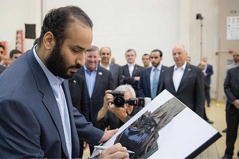 وأُطلِق القمر السعودي من قاعدة جوايانا الفرنسية بالمحيط الأطلنطي، على متن الصاروخ «أريان 5»، الذي وقع الأمير محمد بن سلمان بن عبدالعزيز ولي العهد نائب رئيس مجلس الوزراء وزير الدفاع، على القطعة الأخيرة منه بعبارة «فوق هام السحب».