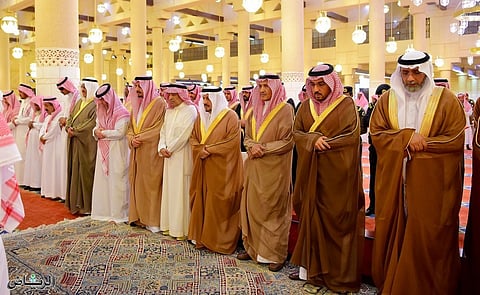 وأمَ المصلين مفتي عام المملكة، رئيس هيئة كبار العلماء وإدارة البحوث العلمية والإفتاء، الشيخ عبدالعزيز بن عبدالله آل الشيخ، وشارك في الصلاة، كل من الأمير سعود بن سعد بن عبدالعزيز، ومستشار خادم الحرمين الشريفين الأمير فيصل بن خالد بن عبدالعزيز، والأمير نواف بن محمد بن عبدالله بن عبدالرحمن، والأمير عبدالعزيز بن فهد بن سعد بن عبدالرحمن، والأمير بدر بن فهد بن سعد بن عبدالرحمن، إلى جانب شقيق الفقيدة الأمير محمد بن بندر بن فهد بن سعد بن عبدالرحمن، والأمير محمد بن فيصل بن بندر بن عبدالعزيز، فضلًا عن عدد من أصحاب السمو، الأمراء وكبار المسؤولين، وجمع من المواطنين.