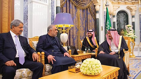 وجرى خلال الاستقبال، استعراض السبل الكفيلة بتعزيز التعاون الثنائي بين المملكة وباكستان في المجال البرلماني.