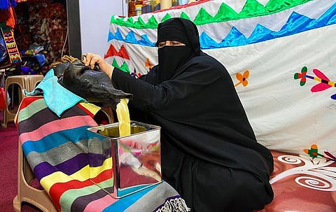 جذب وعاء «العكة» بفعاليات «الخزامى» المقامة في منطقة الحدود الشمالية، الزوار، والتي عادت بهم لزمن الآباء والأجداد والأدوات المستخدمة لحفظ الأطعمة آنذاك وقبل ظهور الوسائل الحديثة.