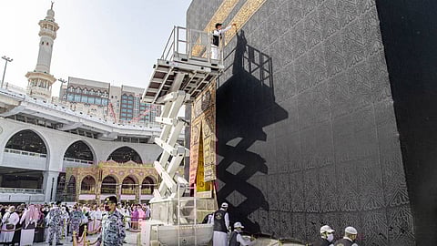قامت إدارة صيانة كسوة الكعبة المشرفة بالمسجد الحرام، التابعة للرئاسة العامة لشؤون المسجد الحرام والمسجد النبوي -استعدادًا لشهر رمضان - بمتابعة أعمال شد الحزام وصيانة ثوب الكعبة المشرفة ليحتفظ برونقه، إضافة إلى تثبيت أطرافه.