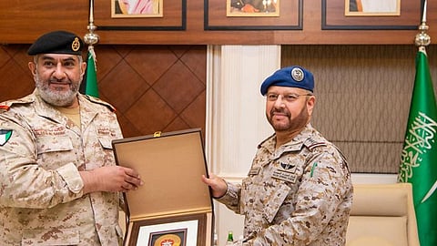 ورحب المسؤول السعودي برئيس الأركان العامة للجيش الكويتي في بلده الثاني المملكة، متمنيًا له ولمرافقيه طيب الإقامة.