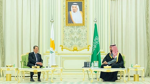 جانب من المباحثات الرسمية بين ولي العهد ورئيس قبرص في قصر اليمامة