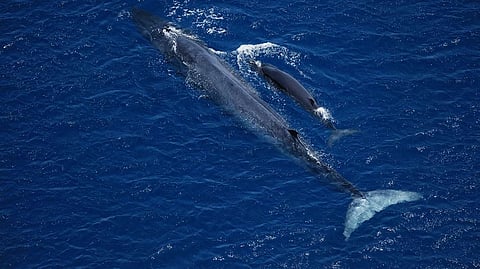 رصد المركز الوطني لتنمية الحياة الفطرية حوت «برايد» مع صغيرها بمياه البحر الأحمر، أثناء رحلة استكشافية، وهو يستهلك طنًّا من الطعام يوميًّا.