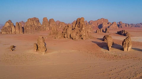 تتميز صحراء "حسمى" برمالها الحمراء وجبالها الرملية في الجهة الشمالية الغربية من منطقة تبوك، وتضفي جمالاً طبيعيًا وبُعدًا جيولوجيًا لهذه الصحراء التي تنتشر فيها الجبال الحاضرة في سجل التاريخ، والتي يعود عمرها لأكثر من 500 مليون عام.