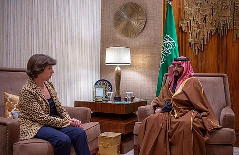 استقبل صاحب السمو الملكي الأمير محمد بن سلمان بن عبدالعزيز ولي العهد رئيس مجلس الوزراء، اليوم معالي وزيرة خارجية الجمهورية الفرنسية السيدة كاثرين كولونا.