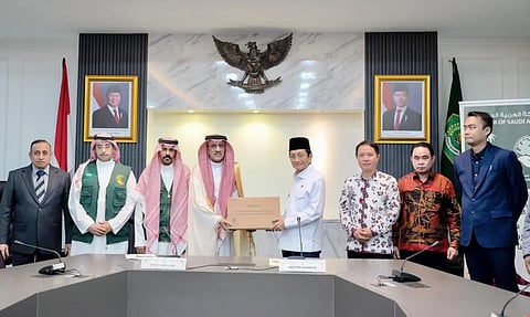 قام بتسليم المساعدات - نيابة عن المركز - سفير خادم الحرمين الشريفين لدى جمهورية إندونيسيا فيصل بن عبدالله العامودي لمعالي وزير الشؤون الدينية الدكتور نصر الدين عمر، بحضور عدد من المسؤولين، وجمع من وسائل الإعلام، وفريق من المركز.