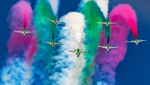 وأوضح قائد فريق الصقور السعودية المقدم طيار محمد بن عبدالله الفارس، أن مشاركة القوات الجوية تضمنت عروضاً جوية احترافية بطائرات فريق الصقور السعودية، فيما قدمت طائرتا التايفون عروضاً جوية انفرادية، وأظهروا من خلالها المستوى العالي لقدرات ومهارات الطيارين السعوديين.