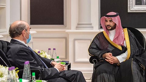 استقبل نائب وزير الدفاع الأمير خالد بن سلمان بن عبدالعزيز، اليوم في الرياض، مبعوث الولايات المتحدة الأمريكية الخاص لإيران إليوت أبرامز.