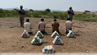 كما ألقت الدوريات البرية لحرس الحدود في قطاع الدائر بمنطقة جازان، القبض على (8) مخالفين لنظام أمن الحدود من الجنسية الإثيوبية، لتهريبهم (285) كيلوجرامًا من نبات القات المخدر، مشيرة إلى استكمال الإجراءات النظامية الأولية بحقهم، وتسليمهم والمضبوطات لجهة الاختصاص.