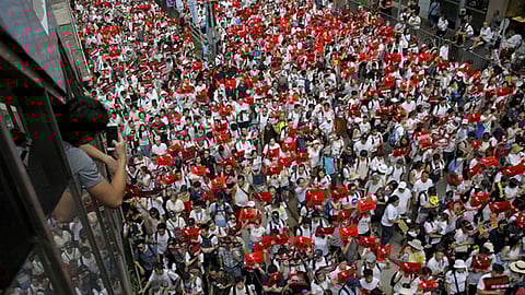 وتحصّن أقل من 100 محتجّ داخل إحدى جامعات هونج كونج اليوم الخميس، حيث أحاطت شرطة مكافحة الشغب بالحرم الجامعي، واختبأ بعض النشطاء بينما ظلّ آخرون يبحثون عن سبيل للهروب، وارتفعت أكوام القمامة حول الحرم الجامعي وتناثرت النفايات وبقايا العبوات الحارقة على الأرض. وترك كثير من المحتجين متعلّقات مثل المظلات والأقنعة الواقية من الغاز.