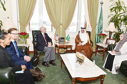التقى وزير الدولة السعودي للشؤون الإفريقية، أحمد القطان، اليوم السبت، المبعوث الأمريكي إلى السودان، دونالد بوث، وتبادلا وجهات النظر حول أفضل السبل لمساعدة السودان وإعادة أمنه واستقراره والخروج به من الأزمة الحالية، فيما أثنى بوث على دور المملكة في حل أزمة السودان، وإيجاد حل سلمي للمعضلة الراهنة.