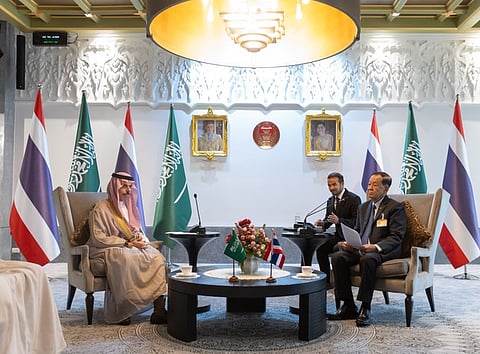 التقى الأمير فيصل بن فرحان بن عبدالله وزير الخارجية، اليوم، في العاصمة التايلندية بانكوك، رئيس البرلمان ورئيس مجلس النواب في مملكة تايلند السيد وان محمد نورماثا، وذلك خلال زيارة سموه الرسمية إلى مملكة تايلند.