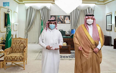 واطمأن أمير المنطقة، خلال الاستقبال على صحة العنزي، مثنيًّا على هذا العمل الإنساني والنبيل الذي يعكس الترابط بين أفراد المجتمع السعودي، داعيًّا الله أن يجعل ذلك في ميزان حسناته.