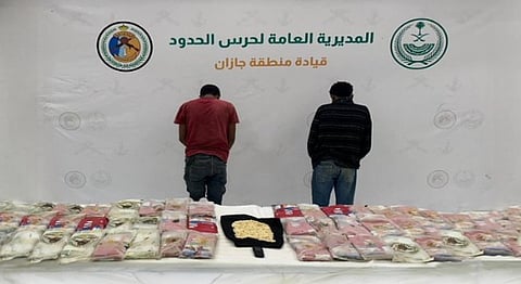 أعلنت الدوريات البرية لحرس الحدود في قطاع الدائر بمنطقة جازان على مخالفين لنظام أمن الحدود من الجنسية الإثيوبية، لتهريبهما (43) كيلوجرامًا من مادة الحشيش المخدر و(3420) قرصًا من مادة الإمفيتامين المخدر.