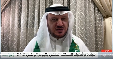 وأضاف الجطيلي، في تصريحات عبر قناة "الإخبارية"، اليوم الإثنين، للاحتفال باليوم الوطني السعودي 94، أن المملكة العربية السعودية تعانق عنان السماء في المجالات كافة، ومنها المجال الإنساني.