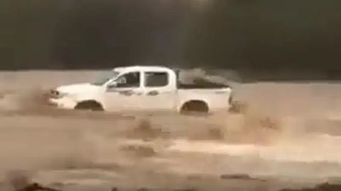 وتداول مغردون على منصة "تويتر"، مقطع فيديو يظهر جريان السيارة التي تحمل الأطفال وغرقها وسط سيل جارف، ناتج عن هطول الأمطار الغزيرة.