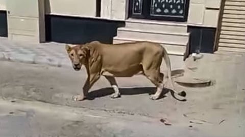 وبحسب مقاطع فيديو، وثقها مستخدمون عبر مواقع التواصل الاجتماعي «تويتر»، فإن الأسد كان يتجول بشكل طليق في أحد الشوارع الرئيسية في مدينة الخبر.