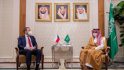 جاء ذلك لقاء الأمير فيصل بن فرحان بن عبد الله وزير الخارجية، في مقر الوزارة بالرياض، اليوم، نظيره التشيكي جاكوب كولهانيك.