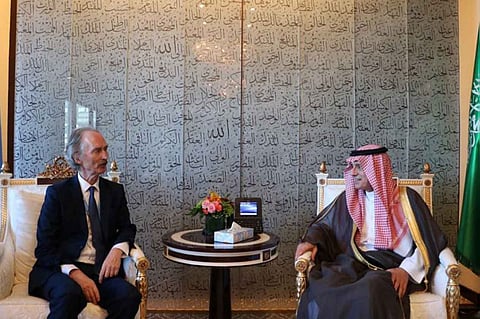 استقبل وزير الدولة للشؤون الخارجية عضو مجلس الوزراء عادل بن أحمد الجبير، المبعوثَ الخاص للأمين العام إلى سوريا جير بيدرسن في مقرّ وفد المملكة بالأمم المتحدة.