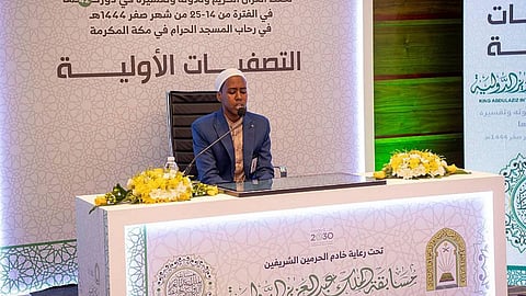 جاء ذلك خلال الدورة الـ «42»، لمسابقة الملك عبدالعزيز الدولية لحفظ القرآن الكريم وتلاوته وتفسيره وتم الاستماع للمتسابقين على فترتين (صباحية ومسائية) بمقر تنظيم المسابقة في أحد الفنادق بجوار بيت الله الحرام.