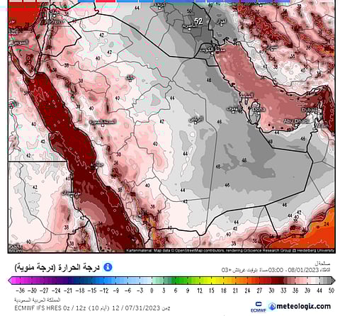 وقال الحصيني عبر حسابه على موقع «تويتر»: «حسب النماذج العددية للطقس متوقع - ان شاء الله - اليوم الثلاثاء 14 محرم 1445هـ أجواء من حارة إلى حارة جدا نهارا وفجرا من معتدلة إلى تميل للاعتدال على معظم مناطق المملكة والخليج المرتفعات الغربية والجنوبية الغربية من المملكة معتدلة نهارا ومن تميل للبرودة إلى باردة ليلاً».