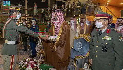 بعد ذلك جرى العرض العسكري، وأدى الخريجون القسم، ثم أُعلنت النتائج، وكرم سموه الطلبة المتفوقين من الدفعة، كما تسلم نائب وزير الدفاع هدية تذكارية من قائد كلية الملك عبدالله للدفاع الجوي. وفي ختام الحفل التقطت الصور التذكارية، ثم عزف السلام الملكي.