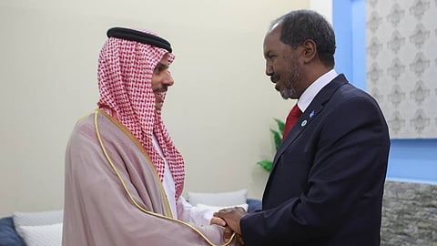 نيابةً عن خادم الحرمين الشريفين الملك سلمان بن عبد العزيز آل سعود، حضر الأمير فيصل بن فرحان بن عبدالله وزير الخارجية، اليوم، مراسم تنصيب حسن شيخ محمود رئيس جمهورية الصومال الفيدرالية، وذلك في الحفل الذي أقيم في مطار آدم عدي الدولي، في العاصمة مقديشو.