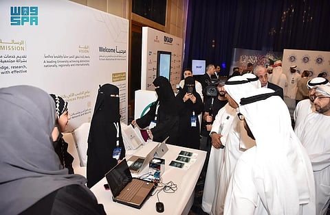 وأوضحت عميدة الكلية التطبيقية الدكتورة فاطمة الرواجح؛ أنه قُدم خلال المؤتمر, عدد من الأوراق العلمية منها "الكشف الذكي عن الفيضانات في المملكة العربية السعودية" للكشف الذكي عن الفيضانات السعودية باستخدام التكامل بالذكاء الاصطناعي، وتقنية البلوكتشين باستخدام الطائرات بدون طيار، لمعالجة الخطر المتزايد للفيضانات ومناقشة الطرح المقترحة وتحدياتها في المناطق النائية بالمملكة، وكذلك في مجال الأمن السيبراني والذكاء الاصطناعي؛ مع استعراض المشروع الابتكاري ( لِنستديم) المصنوع من ورق البذور الذي تم تحليله بجهاز الذكاء الاصطناعي الدقيق ثم عجنه و تشكيله ثم تحويله إلى نبتة مستدامة يستفيد العميل من المنتج أولاً باستخدامه كما هو ثم بزراعته، و(نَسيم ) وهو كوّاية بخار تكوي وتعطر الملابس ويتغير طولها وعرضها باستخدام الذكاء الاصطناعي بناء على حجم الملابس المعلقة على الجهاز، ومشروع عن لوح تحكم يطلق بإسم (اوردوينو اونو) ، يقيس نسبه التلوث بالجو من حراره وضغط وغاز وغبار عن طريق موقع "Arduino IDE” يتم من خلاله إدخال الأكواد وبرمجة لوح الأوردوينو والحساسات، ومشروع (مُبحر) وهو قارب يجمع النفايات العائمة من سطح البحر باستخدام الذكاء الاصطناعي والطاقة الشمسية؛ وغيرها.